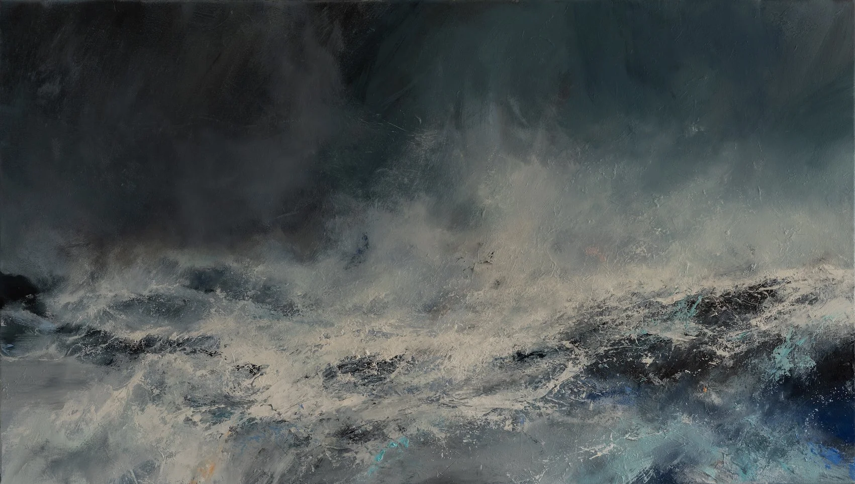 ARCHIVE Sea State force 8 - northwesterly winds, Ness of Bakka86 x 150cm cm oil on canvassigned and dated on verso