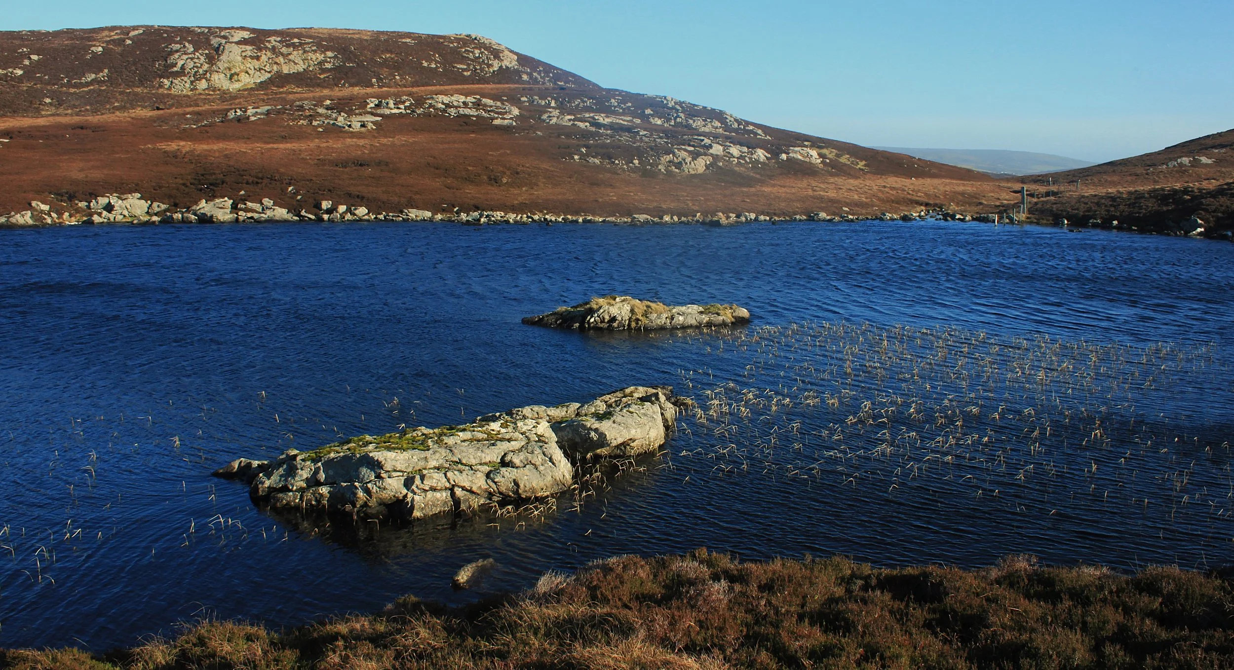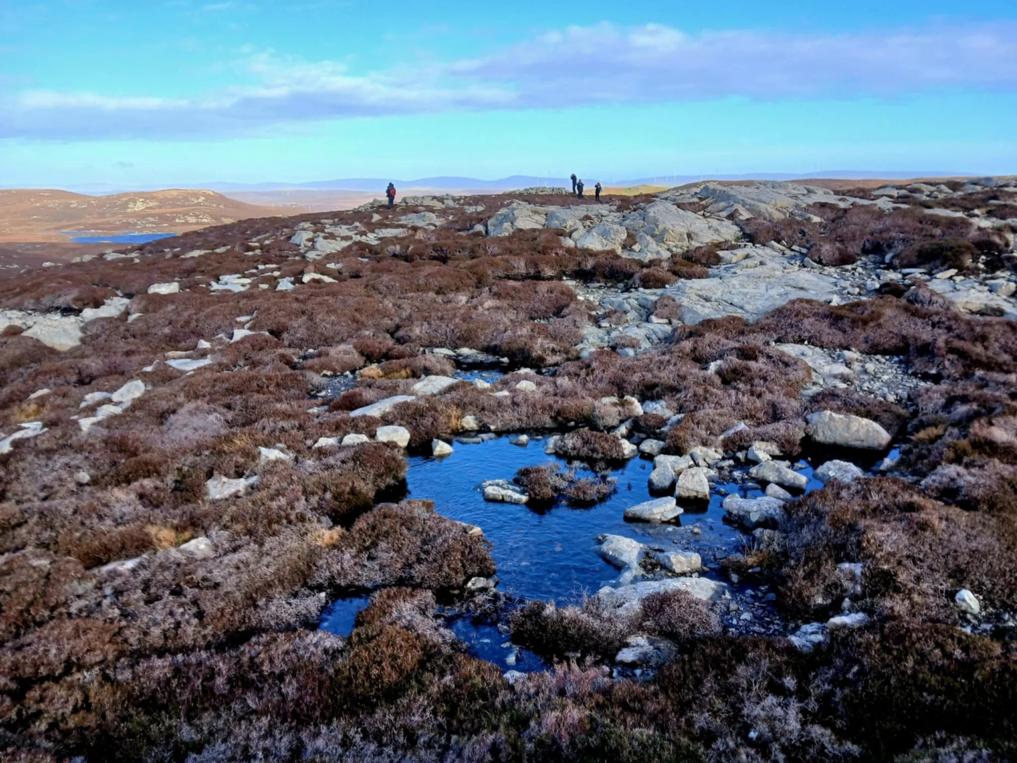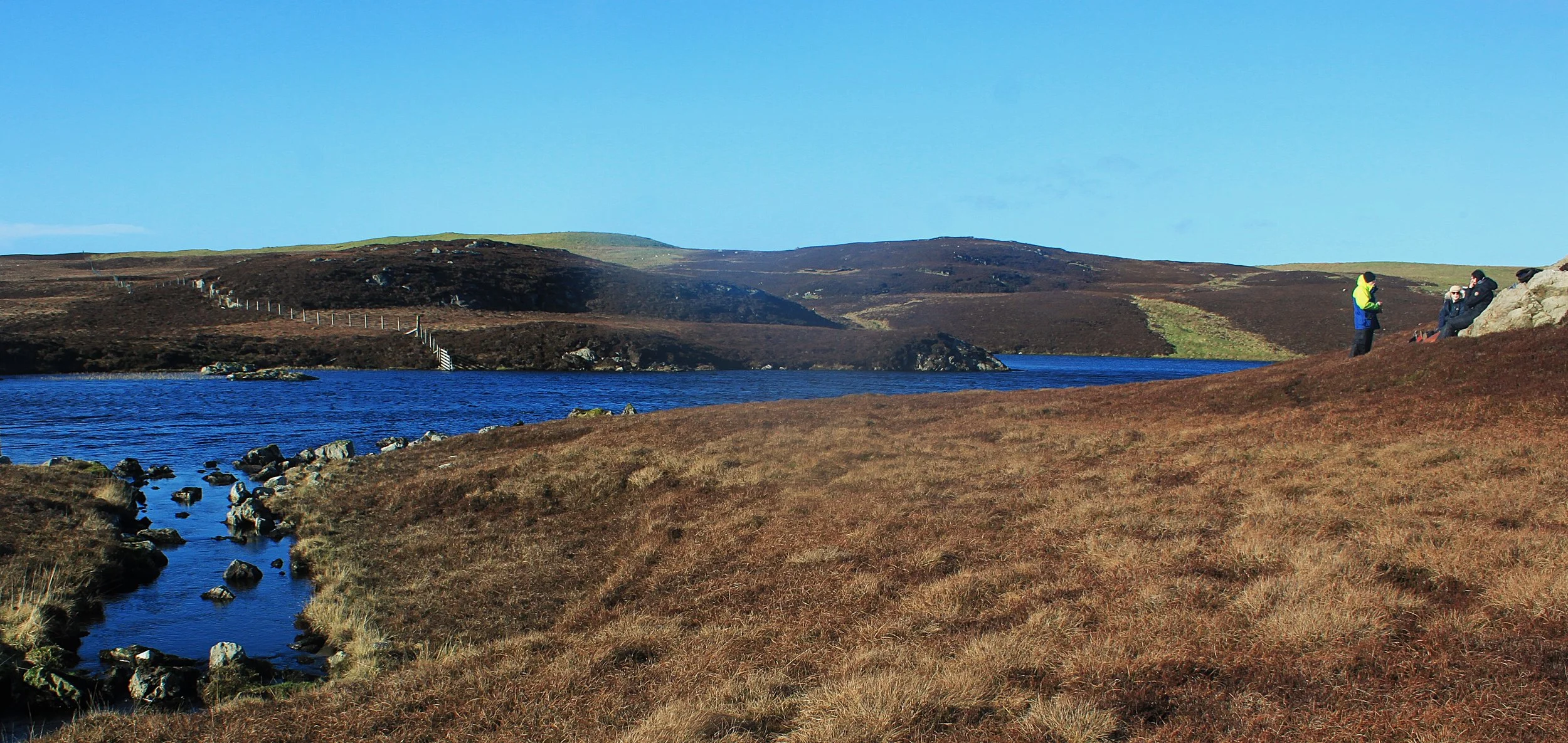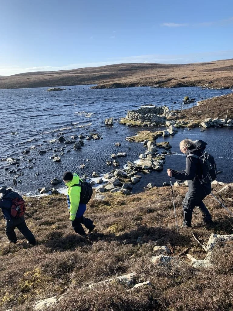 The landscape below us is littered with glistening pools of water, the Shetland word for which, Jim tells us, is ‘shuns’ .