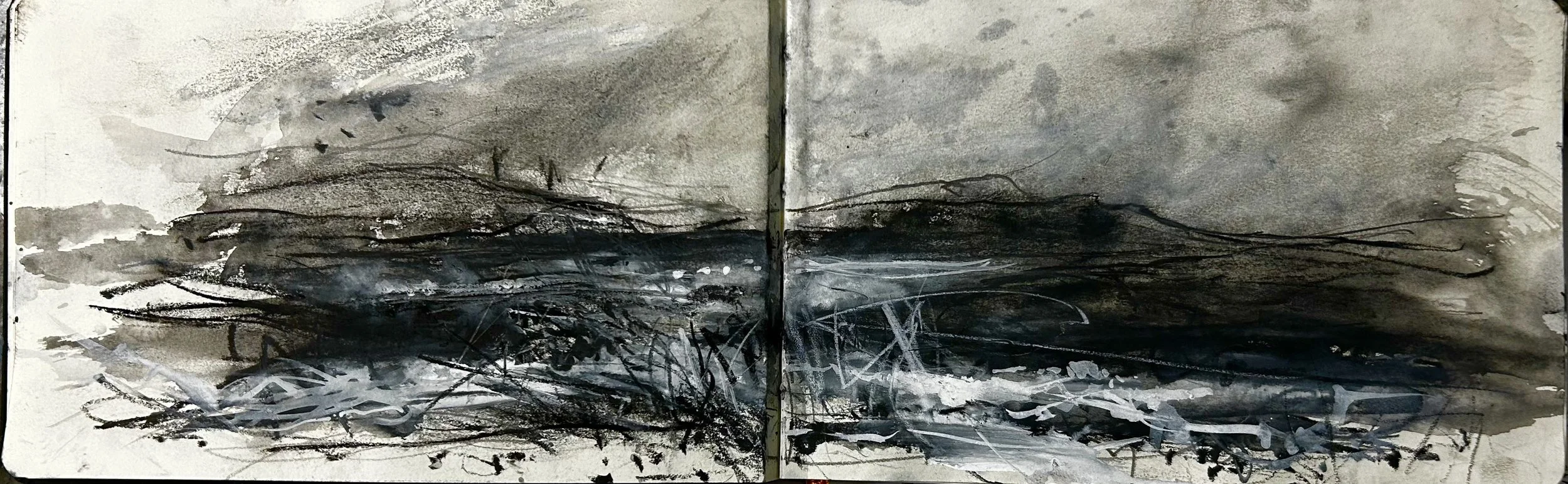 Janette Kerr, plein-air artgraff drawing from Swae Field