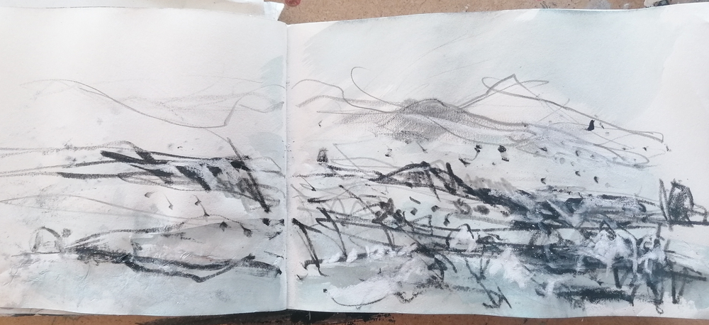So now it’s Tuesday and the sun is back and the thawing starts again, although the sun is deceptive – after an hour or so of sitting out drawing it’s bloody cold and I’m not sure I can feel my nose. I have less than 2 weeks left here and a lot of ends to tie up before I pack up and leave. I’ve decided to make lots of small drawings – in fact the quicker ones seem to turn out best - each day it’s going to be down to the bay to see what arrangements the icebergs are forming and draw! Here are todays selection: