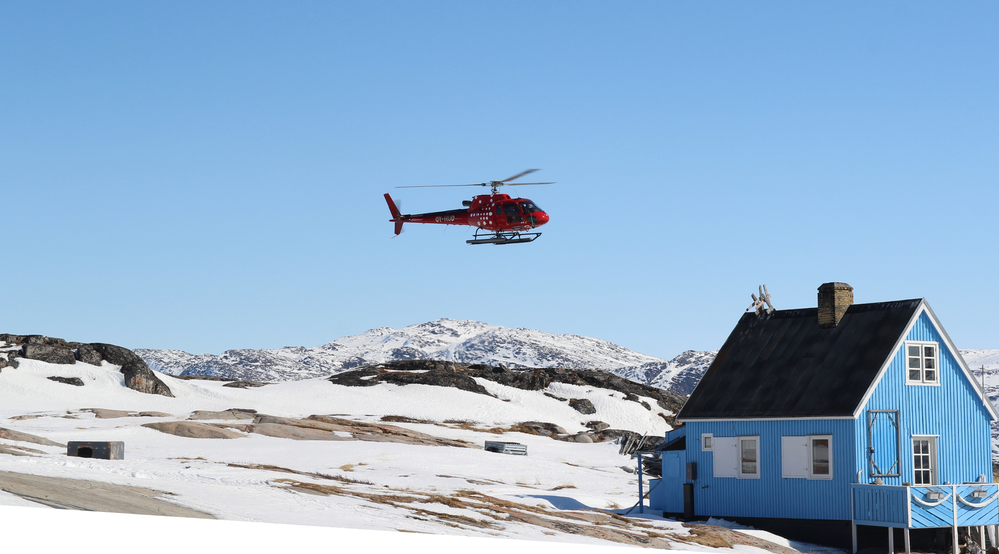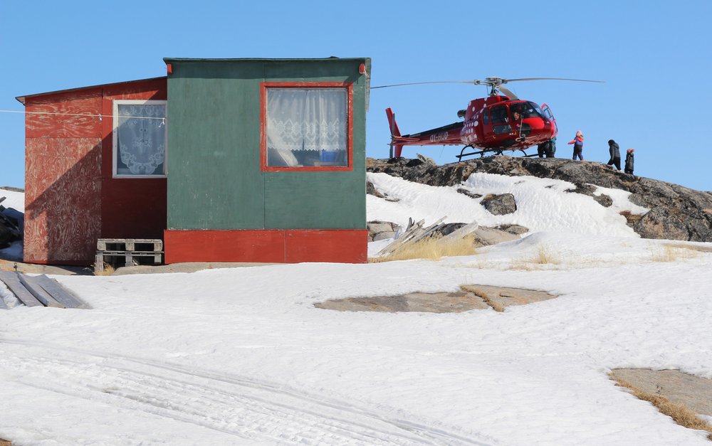 It’s the weekend and it’s all go here in Oqaatsut; Andreas and his family arrive, the tanker returns and makes it into the harbour to fill the oil tanks, a helicopter lands just above the house where I sleep (I don't mean that green house in my photo - although it looks quite cute - mine is the blue one). All the kids rush out and have a tour round it, before it takes off and soars away into the blue.
