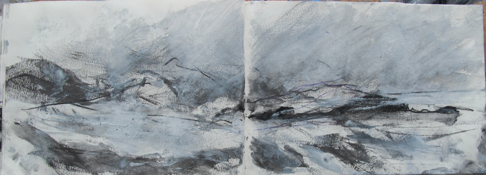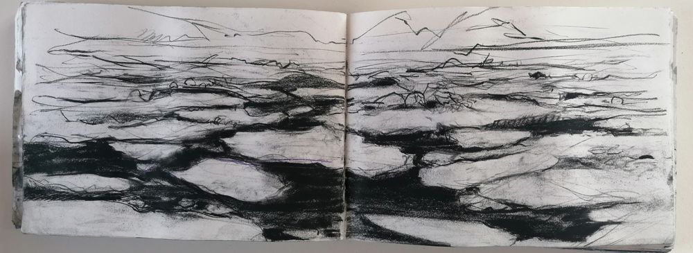 I try to draw the shape of the hills and valleys but I get lost in the maze of crevasses.