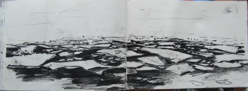 I've been out drawing the broken up ice in the harbour side bay - watching fishing boats skilfully manoeuvring around and through and even over the maze of slabs. There's still a lot of ice out there.