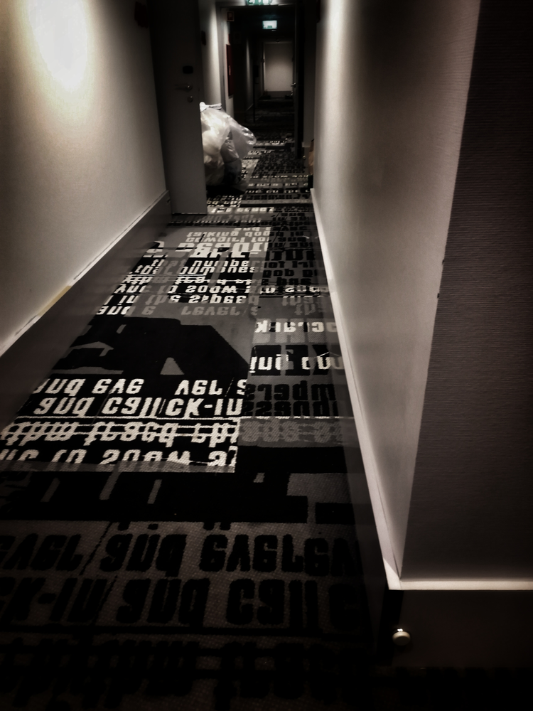We walk out of room 473. We clatter down the fire escape as instructed so we don’t encounter and contaminate hotel staff.