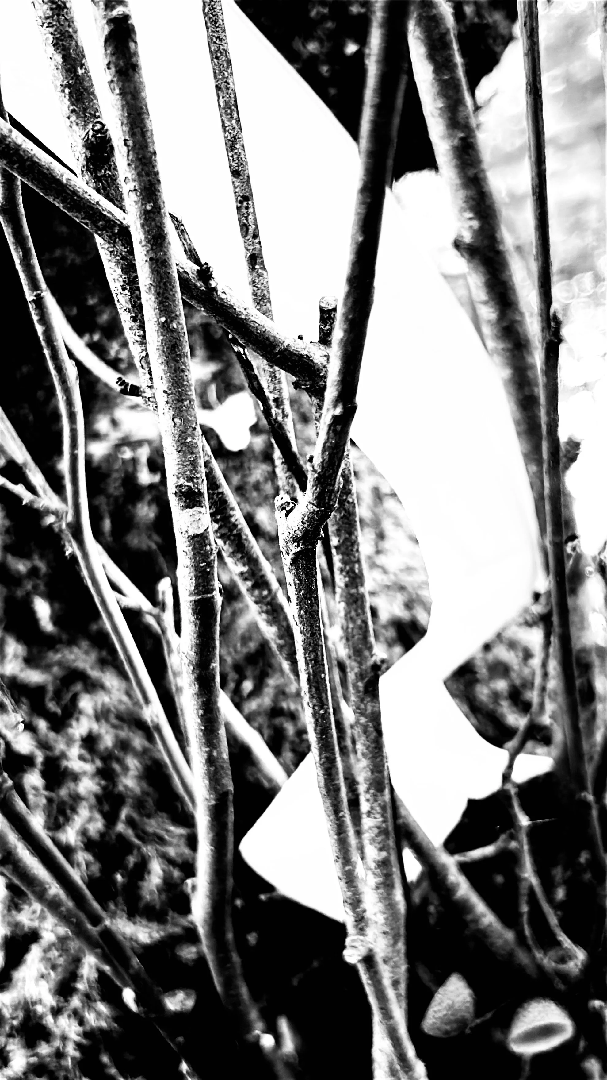 The coil of paper hidden at the base of the tree is slowly being covered in decaying plants, and the one hanging in the tree is still there. I’ll leave them for another time.