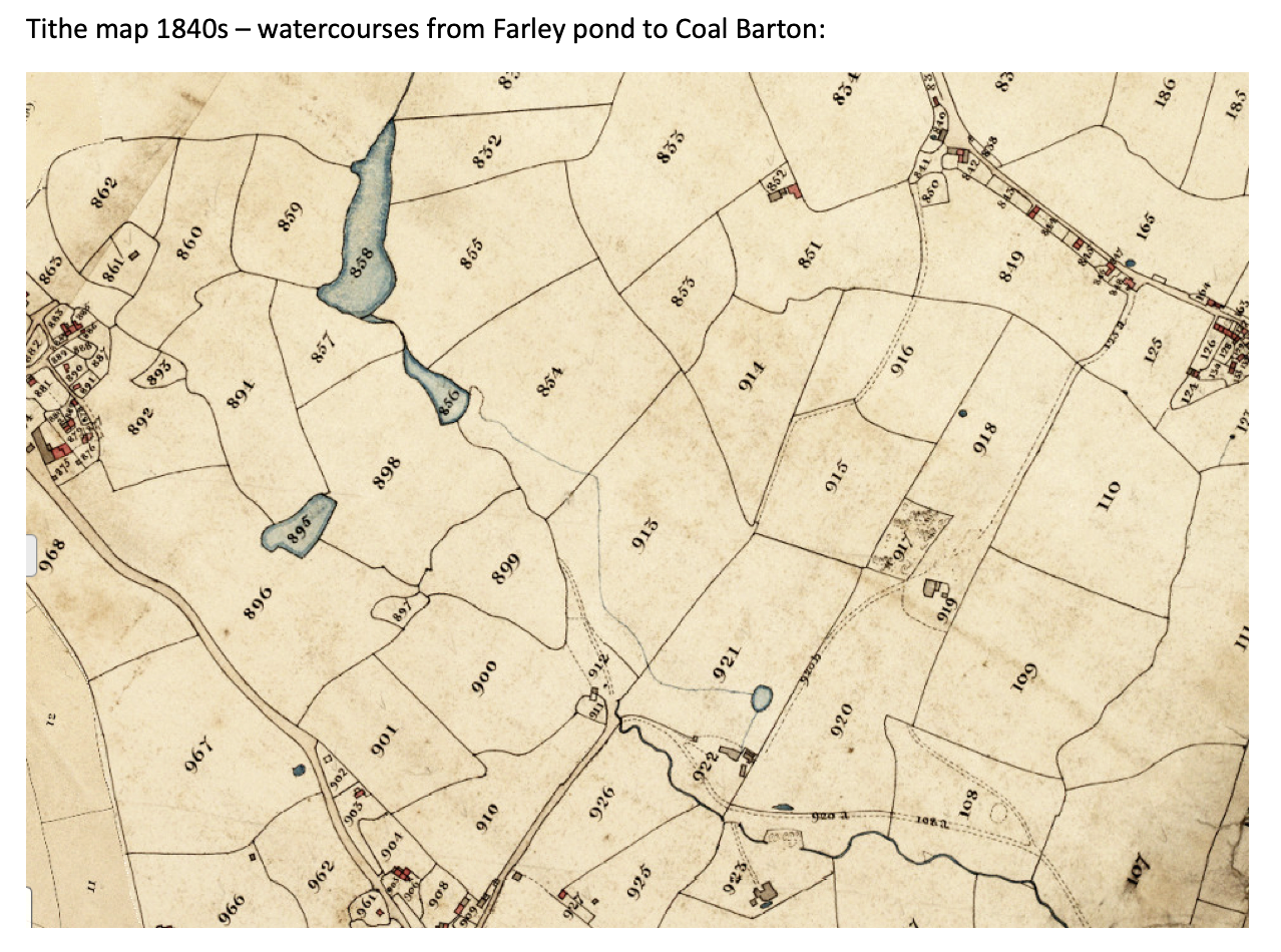 With the help of my partner Steve Poole, who knows a thing or two about historical research, we’ve been doing a bit of digging around in online archives to find more information about the Coal Barton Wood and my pond. It’s a place where, in the late 18th century, coal seams were sunk in a field called Sheere’s Close, south of Coleford (now called Coal Barton Wood); apparently 100 people were working at the pit in 1842. Coal Barton Pit [ST 680 491] closed in 1857 following a firedamp explosion killing 9 miners. My pond was a part of the coal mine – a ‘man-made’ pond - a feed taking water to, or maybe from, the pit. On the 1840 Tithe map the wood doesn’t exist, but the pond is marked on it, and shows a ‘leat’ leading from it to the colliery buildings one way and a stream feeding it flowing down from Farley Dell Pond. The mine had a water-powered bucket pump (not sure what this was).