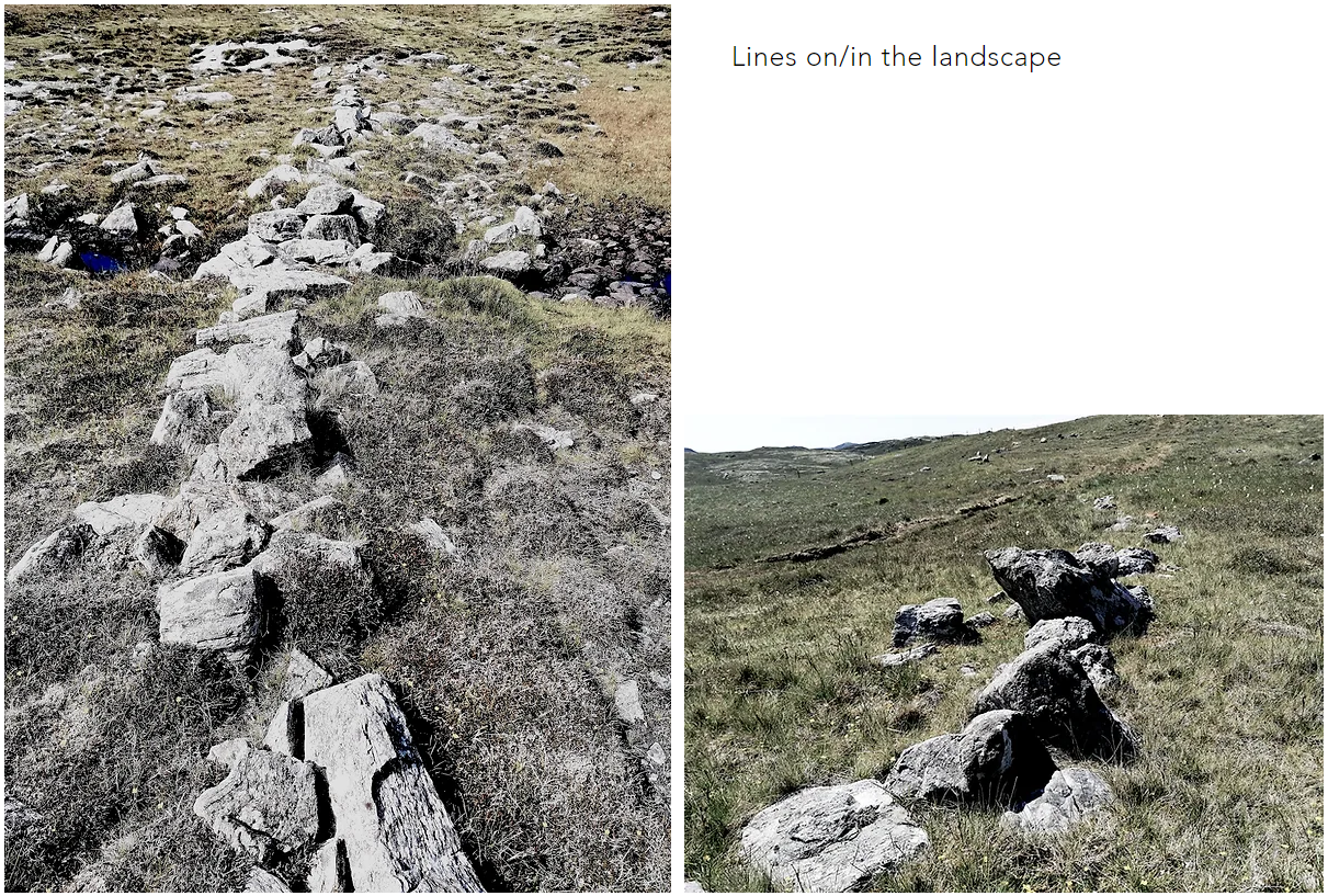 So do these cairn become markers on the land and create liminal spaces that we enter and walk as we travel between them? It makes for a different way of mapping and walking and observing the landscape. Of walking a line between. From some places we can see many of them standing high over the landscape, creating a dialogue between them. We look from one to the next to find our direction of travel. So is the land that we travel across as we pass from one destination (cairn) to the next, the 'inbetween' space? The physical spaces between the leaving and arriving - between one destination and the next. Or are the cairns the liminal zones where we linger and look? Both are full of interest. I take photographs and observations on route - the long view